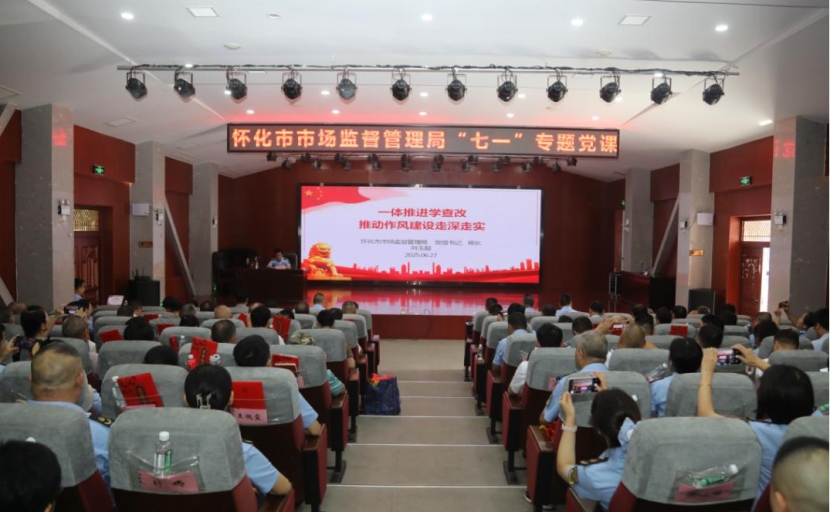 6月30日,為慶祝中國共產黨成立104周年,懷化市市場監督管理局召開“七一”表彰大會。市局黨組書記、局長向玉超出席會議并以《一體推進學查改,推動作風建設走深走實》為題作專題黨課輔導報告;黨組副書記、副局長陳軍主持會議;黨組成員、副局長彭永忠宣讀表彰通報。