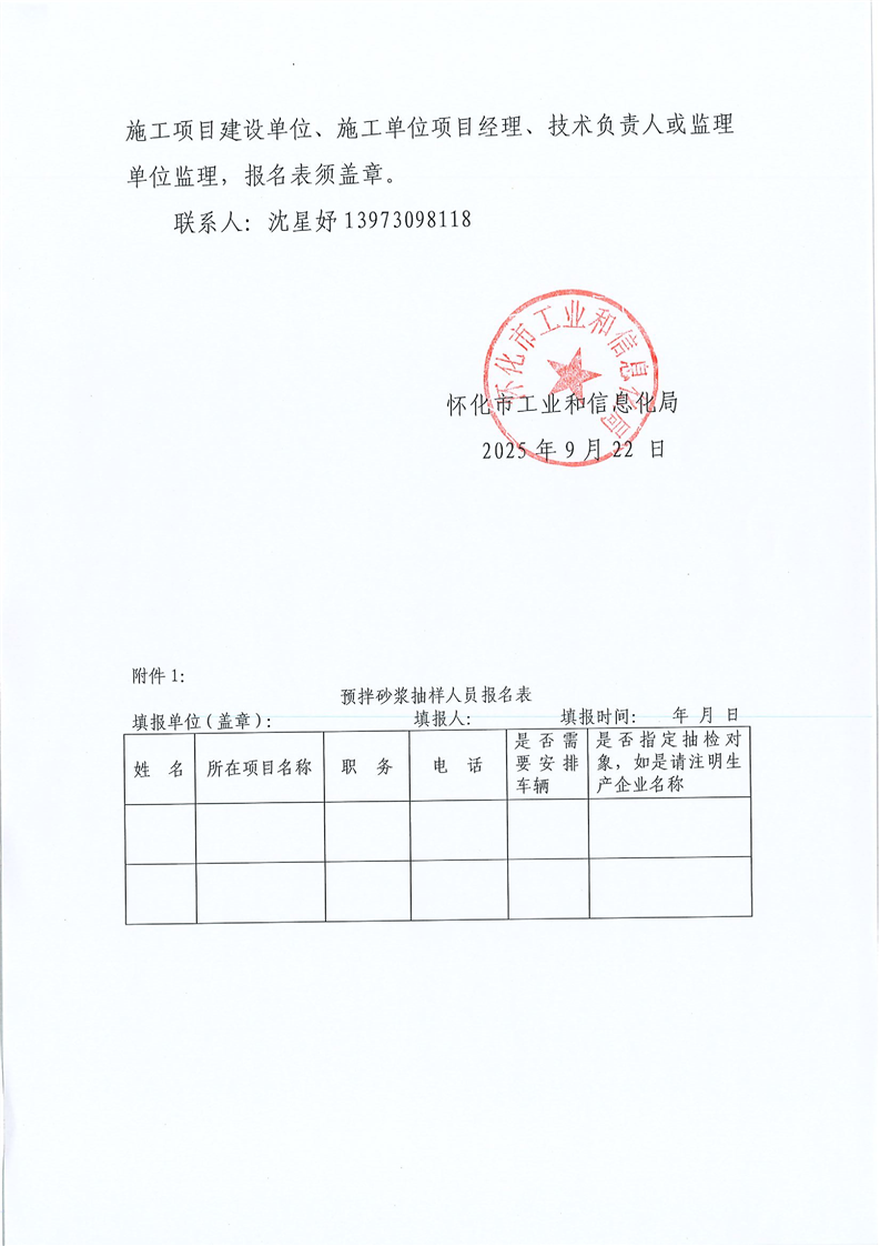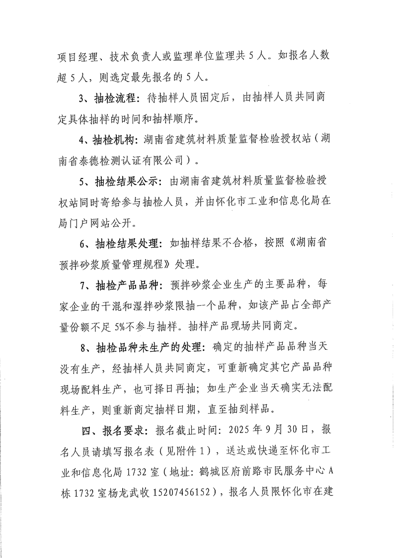 關于征集預拌砂漿抽樣人員暨開展預拌砂漿抽樣檢測工作的函