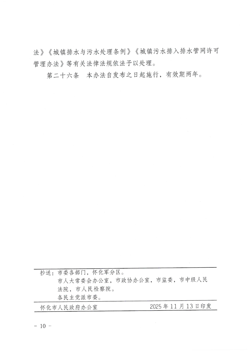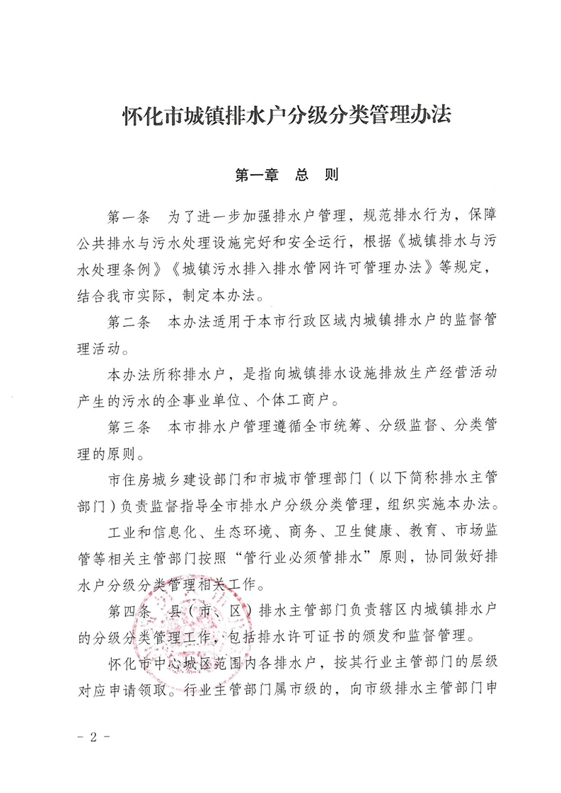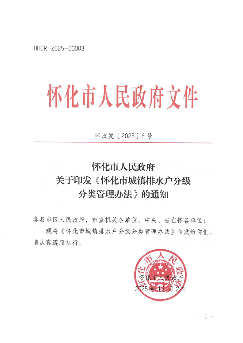 懷化市人民政府關于印發《懷化市城鎮排水戶分級分類管理辦法》的通知