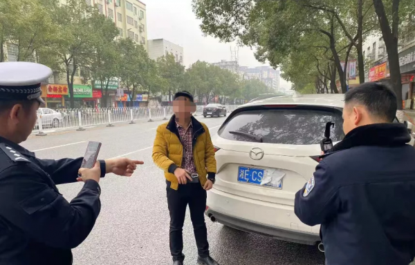 2月12日中午12時許,懷化市公安局交警支隊直屬三大隊民警在轄區迎豐東路紗廠路段巡邏時,發現路邊違停的一輛白色小車有遮擋號牌的嫌疑。于是民警立即下車檢查,發現該車后牌照的幾個字母被幾張紙巾遮住。
