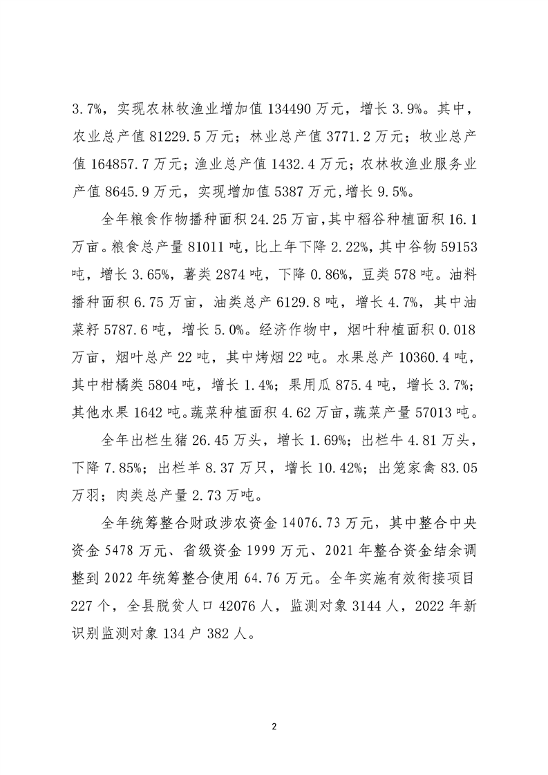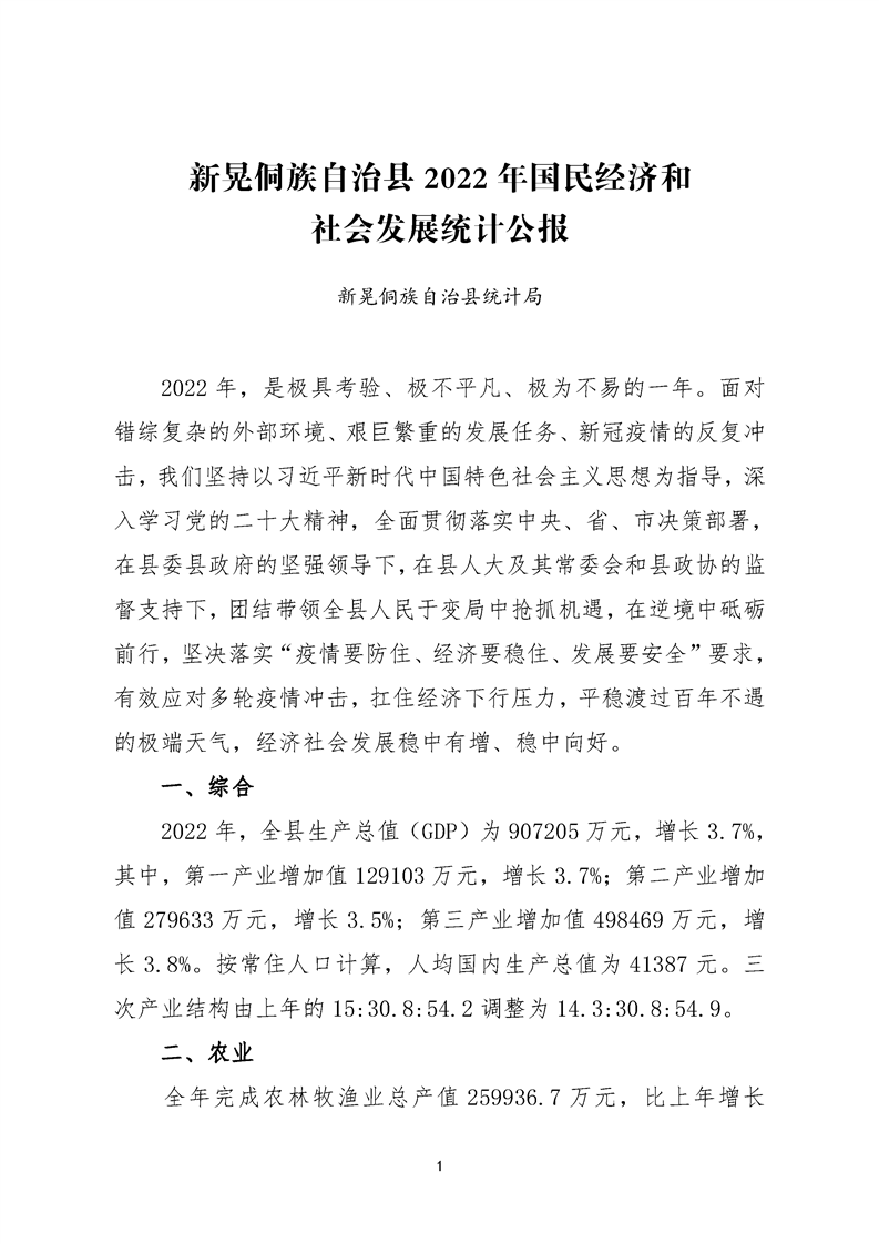 新晃侗族自治縣2022年國民經濟和社會發展統計公報