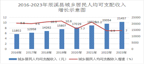 城鎮居民收入穩步增長。根據城鄉一體化住戶抽樣調查,2023年全縣居民人均可支配收入21457元,比上年增長7.0%。其中,城鎮居民人均可支配收入32355元,增長6.5%,農村居民人均可支配收入15728元,增長7.0%。城鄉居民收入穩步增長,收入差距縮小,農村居民人均可支配收入增長速度快于城鎮居民人均可支配收入增長速度0.5個百分點,城鄉居民人均可支配收入比2.057,比上年縮小0.01。全縣居民人均消費支出17481元,比上年增長5.7%,其中城鎮居民人均消費支出25346元,比上年增長4.3%,農村居民人均消費支出13346元,同比增長6.6%。