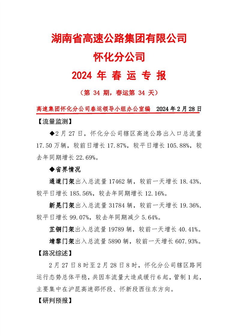 2024年懷化分公司春運專報-第34期