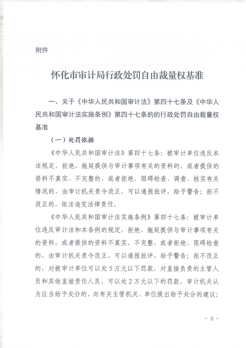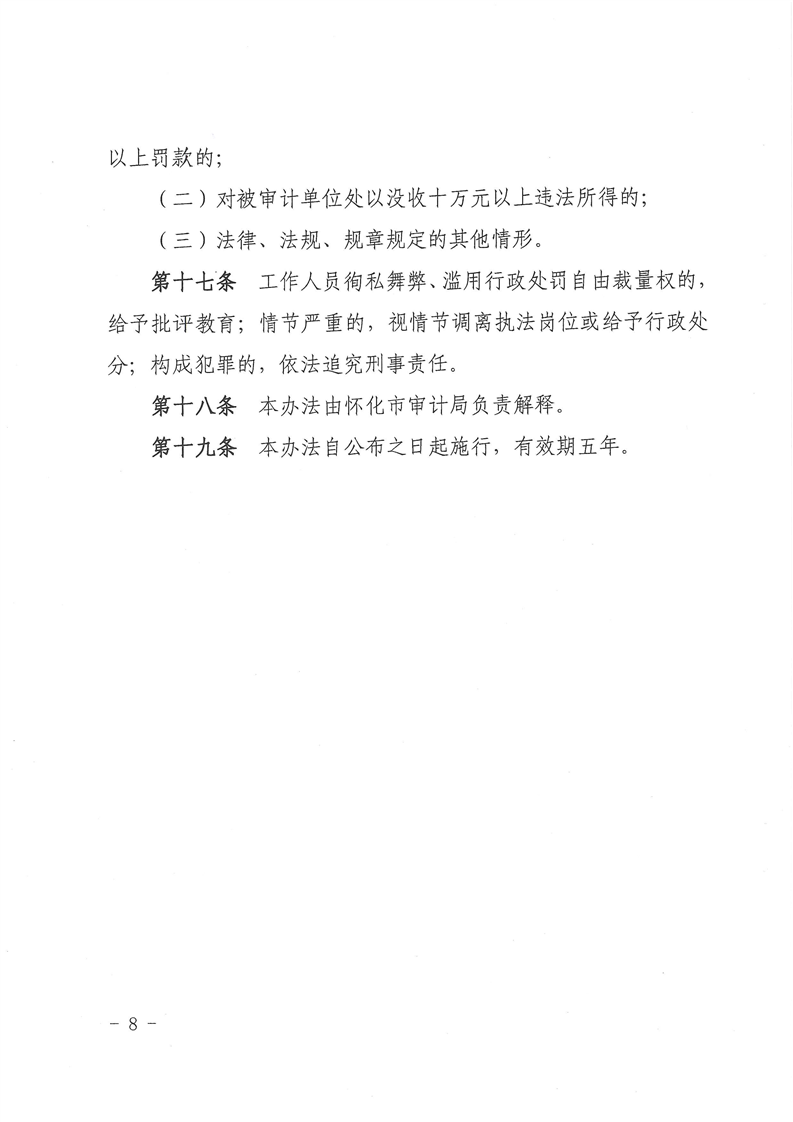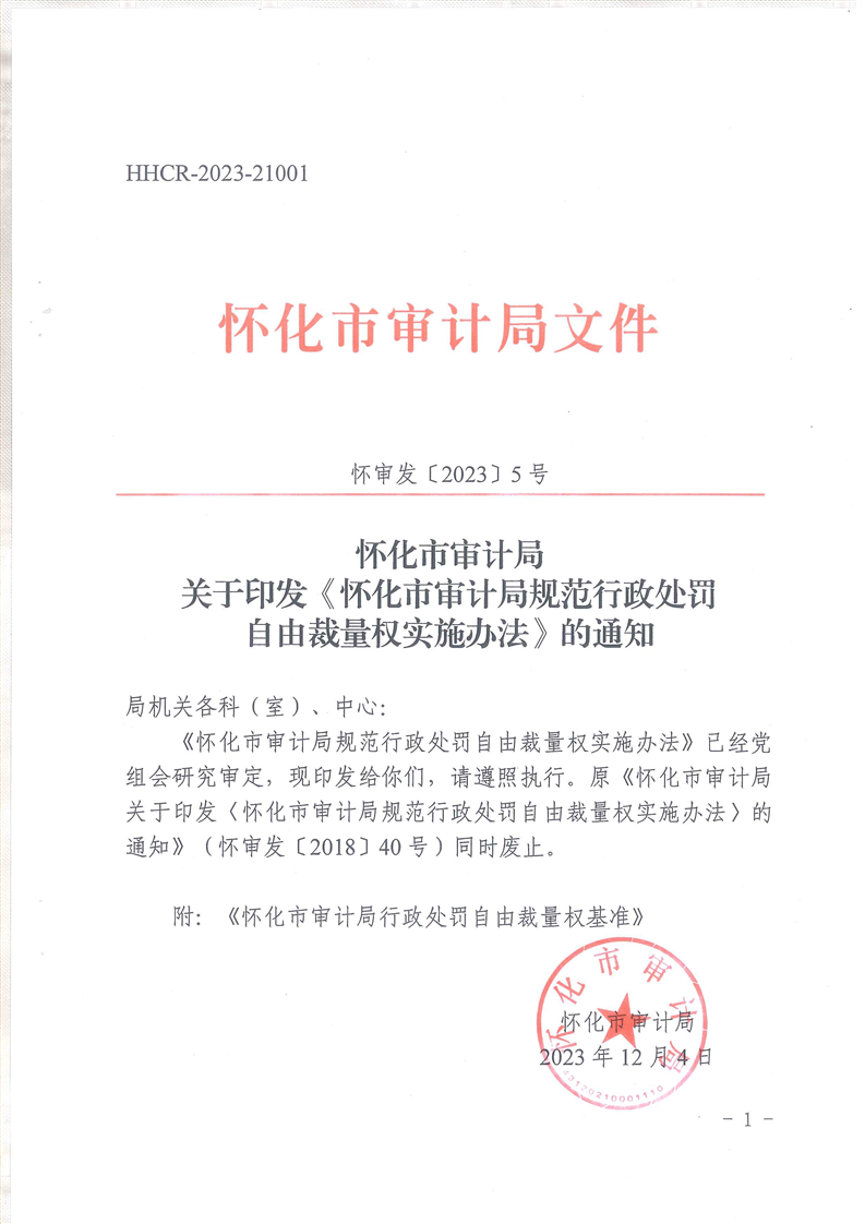 懷化市審計局關于印發《懷化市審計局規范行政處罰自由裁量權實施辦法》的通知