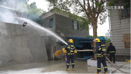 3分鐘后,消防救援人員抵達(dá)現(xiàn)場。一組人員及時撤離“被困老人”;另一組人員則熟練連接消防水帶、架設(shè)水槍,對準(zhǔn)“著火點(diǎn)”進(jìn)行滅火。