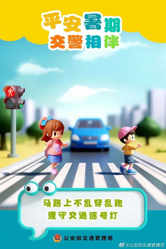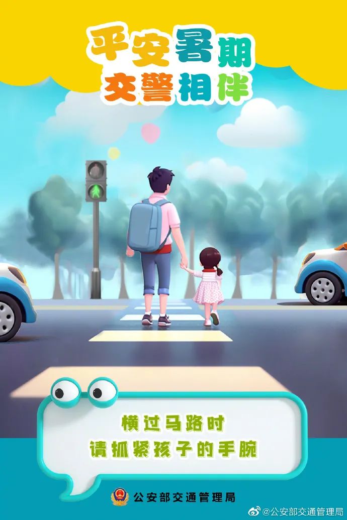 暑假來臨,孩子們戶外玩耍、外出游玩機會增多,交通安全問題需要格外上心。@公安部交通管理局 策劃制作了這批“平安暑期 交警相伴”交通安全海報,請廣大家長和孩子們一起收藏學習吧!