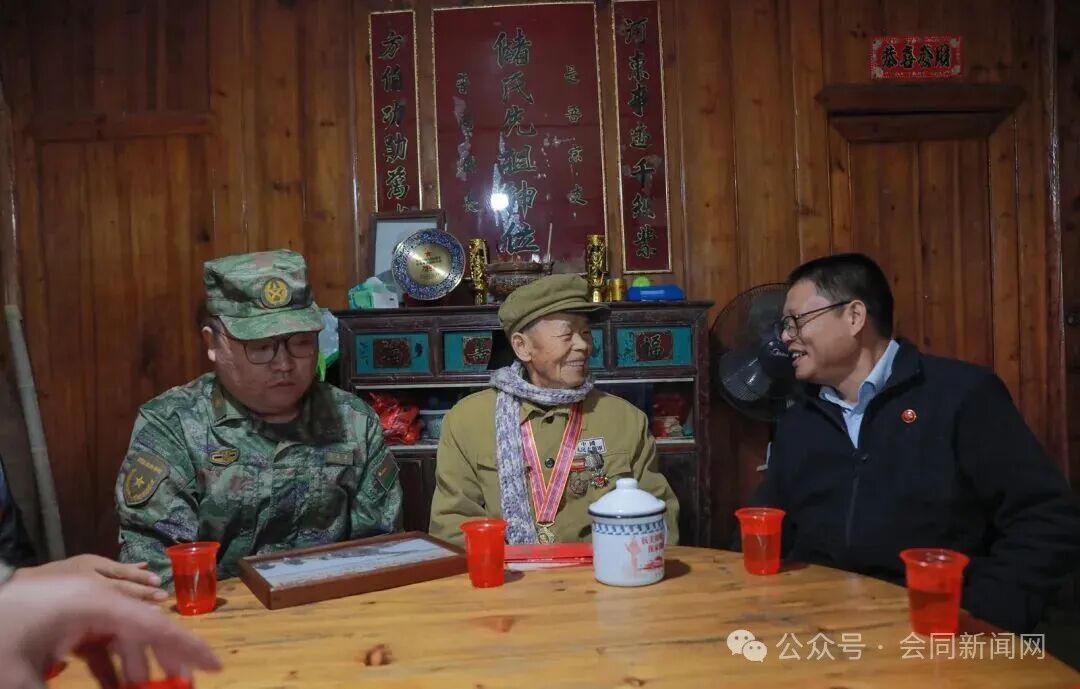 (上圖)縣人武部、縣退役軍人事務局在抗美援朝老兵蔣昌漢家中走訪慰問
