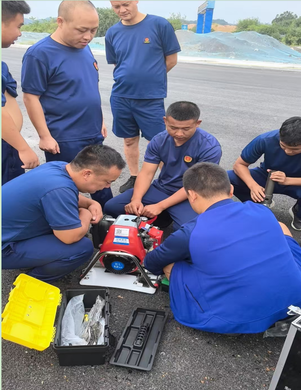 訓練現場,隊員們依次開展負重越野、滅火防護服、風力滅火器、2號工具、高壓細水霧、水泵、水帶等滅火裝備的操作訓練,有利于熟練掌握裝備的使用方法和維護技巧。現場還組織了水泵接力協同戰術、架設水泵、鋪設水帶、銜接水帶等項目的訓練,提高隊員協同作戰能力。此外,針對山區復雜地形,還專門模擬了“快速集結-火情偵察-科學布防”的全流程演練,確保一旦發生火情,能在最短時間內響應、最快速地控制火勢。
