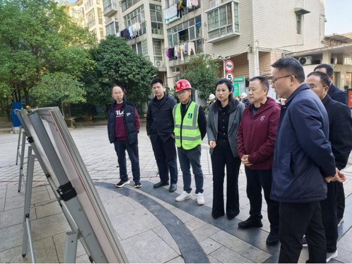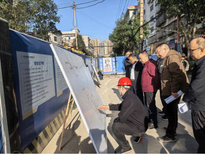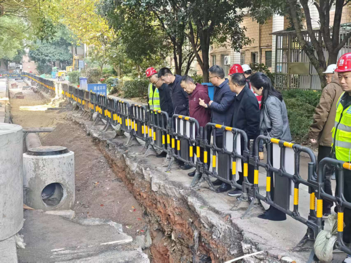(調研組在翻身塘水庫-老煙草公司片區排水設施改造工程現場聽取項目進展情況介紹)