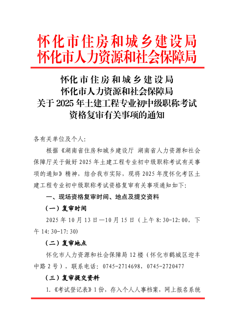 關于2025年土建工程專業初中級職稱考試資格復審有關事項的通知
