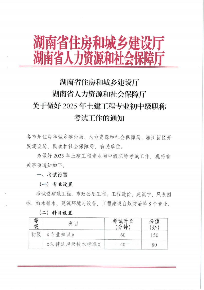 關(guān)于做好2025年士建工程專業(yè)初中級職稱考試工作的通知